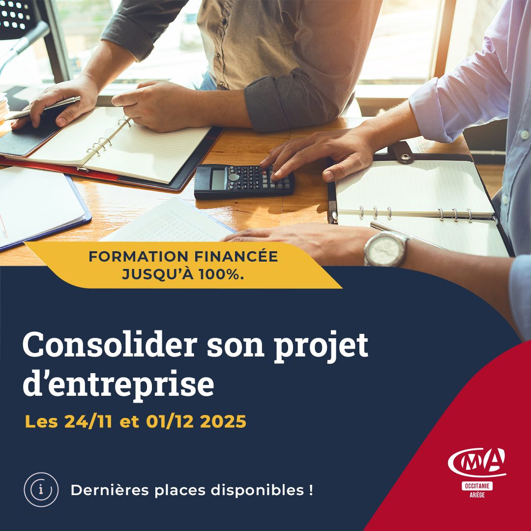 24 novembre @ 8h00 - 17h00 Consolider son projet d’entreprise Chambre de Métiers et de l'Artisanat de l'Ariège 2 rue Jean Moulin, Foix, France